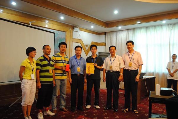 “廈裝”公司傅清良總經(jīng)理(左四)給活動(dòng)優(yōu)勝隊(duì)頒獎(jiǎng)